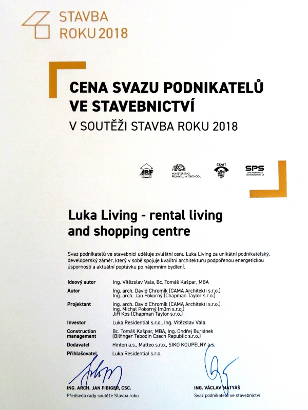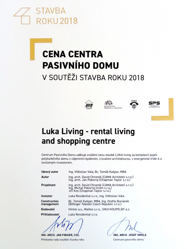 Building of the Year 2018 - Award of the Association of Building Entrepreneurs and Award of the Center of Passive house.