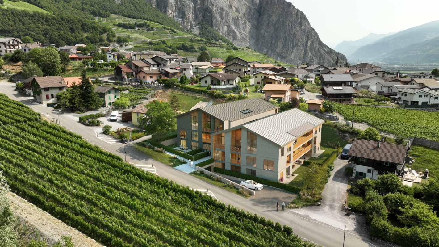 Chamoson je obec ležící v kantonu Valais v jihozápadním cípu Švýcarska. Rozprostírá se na úpatí alpského masivu - z jedné strany je obklopen vysokými horskými štíty, z druhé strany hledí do zeleného údolí a protějších strání. Jeho poloha přináší mnoho benefitů - stráně rozbrázděné vinicemi, termální prameny, výjimečné výhledy a téměř nekonečné slunečné dny. Toto všechno, společně se zachovanou tradiční architekturou, dalo vzniknout podobě návrhu bytového domu.